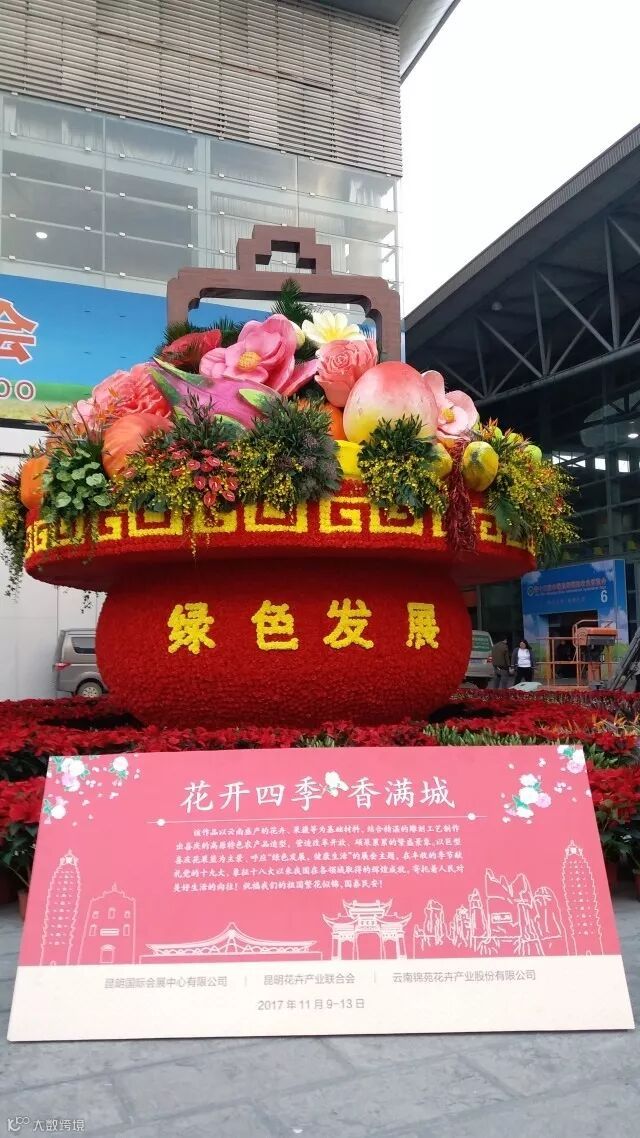 在会场门口,用云南高原特色农产品创作的“丰收”和以花卉为主、云南特色果蔬为辅创作的“花香四季香满城”,展现了云南丰富的农业资源和云南农业快速健康发展的盛况。