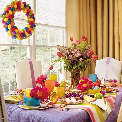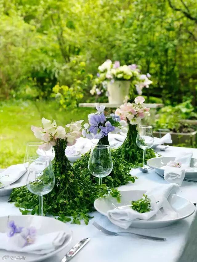其实布置餐桌并不需要多专业,选择同一色系的鲜花,搭配上适合的花器和餐具,就很OK了,当然,如果你有心思和想法就更完美了。
