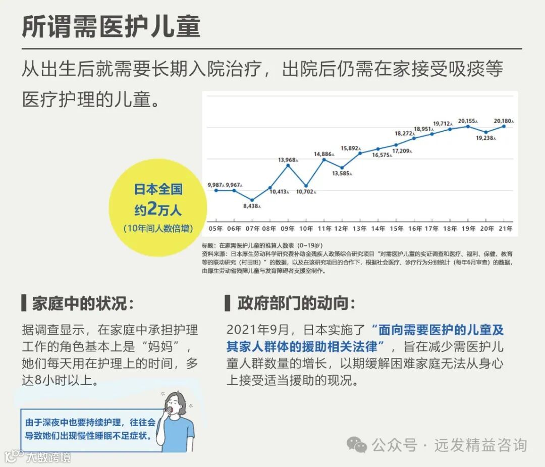 这一群体从出生开始就需要长期住院接受治疗,即便出了院,患儿家属也需要对其进行24小时的陪护,避免出现因积痰而引起呼吸不畅等症状。据说日本全国约有需医护儿童2万人,近十年间这一人数翻了一倍。