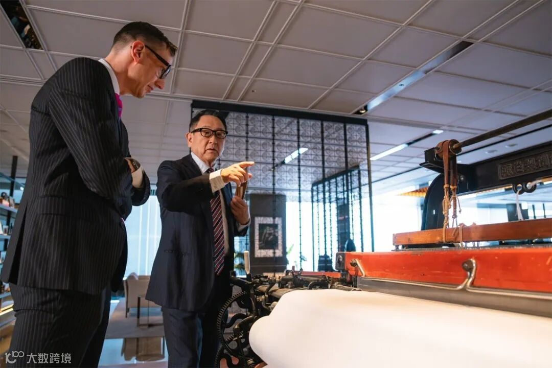 “这台织机的大规模生产始于1925年”章男先生站在织机前,边说边辅以手势:“当时在美国,汽车已成为大众商品,年产已达到300万台,路上随处可见。然而彼时,作为汽车公司的丰田还不存在。”