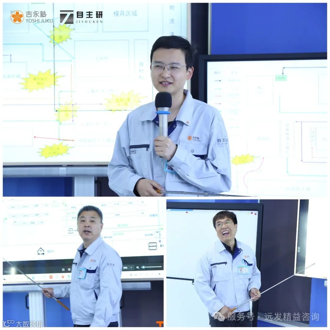 物情图发表组对工厂物与情报未来图进行说明,基于现状的问题点从工站、工艺、信息、物流、人员、设备、物料等全方位信息进行体系化改善。