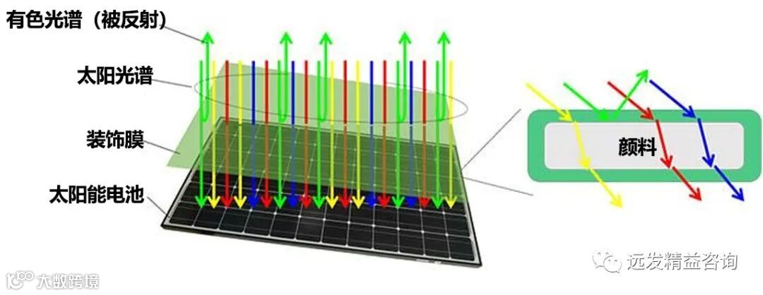 以“半透明”来比喻会更方便大家理解。喷了颜料的装饰膜能反射特定的有色光谱,而其他有色光谱则可以正常透过膜,为太阳能电池提供能量。