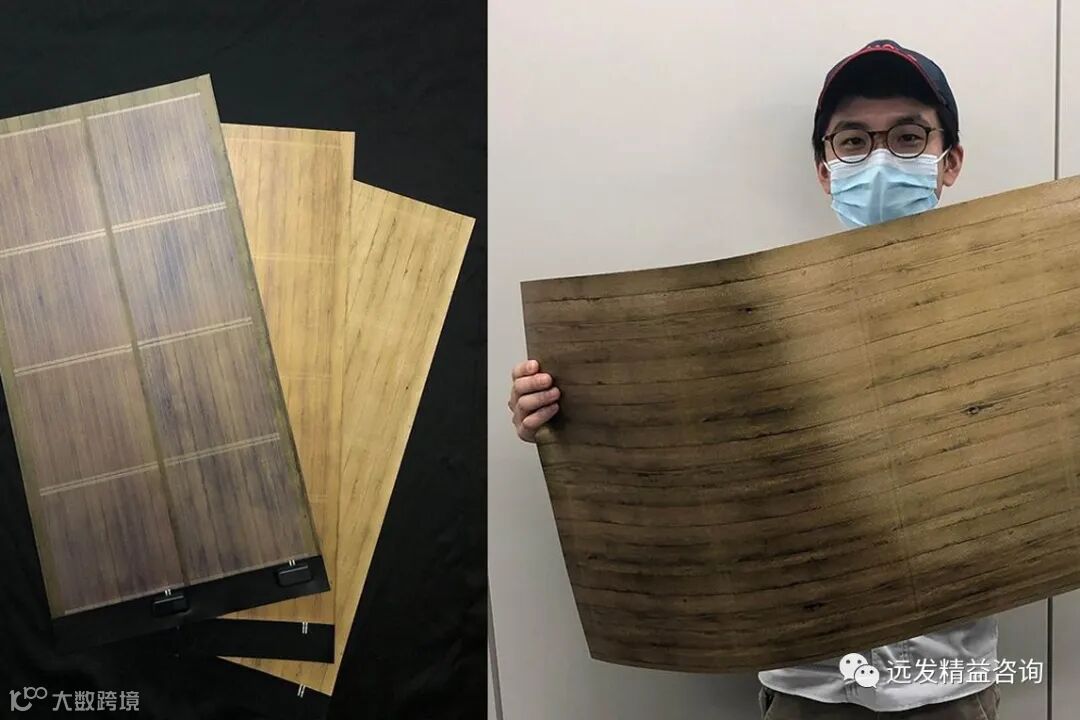 提到光伏板,大多数人的第一印象都应该是黑色的、无纹路的材料。但是通过丰田的研究,朴实无华的光伏板不仅能呈现出迷彩纹路,甚至可以定制各种设计,比如制作成下图中木质结构纹路的样式。