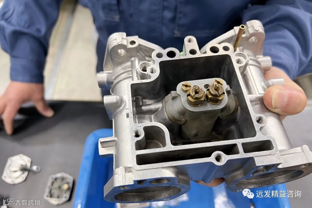 上图为拆解修复中的丰田2000GT SOLEX制双排汽化器。