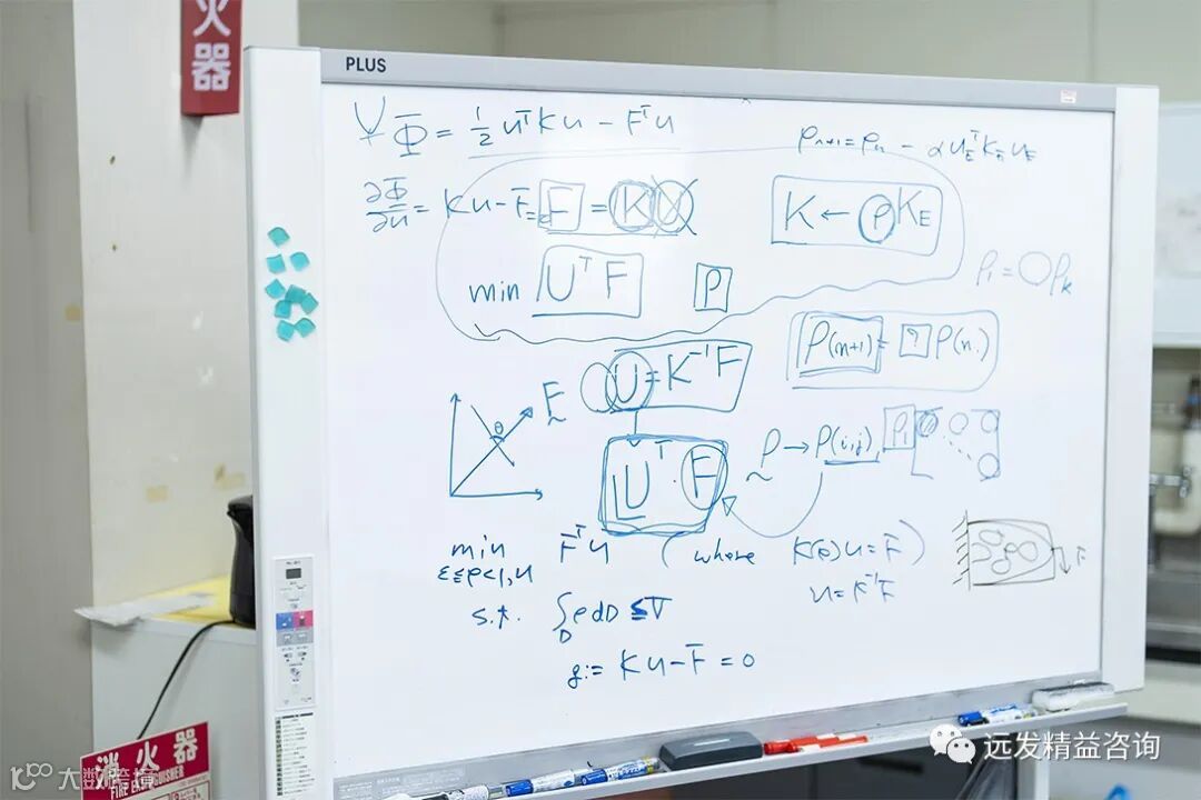 谈笑间,接连不断产生的创意以公式的方式被记录在白板上。记者们虽无法解读,但却感到似乎什么正在应运而生。