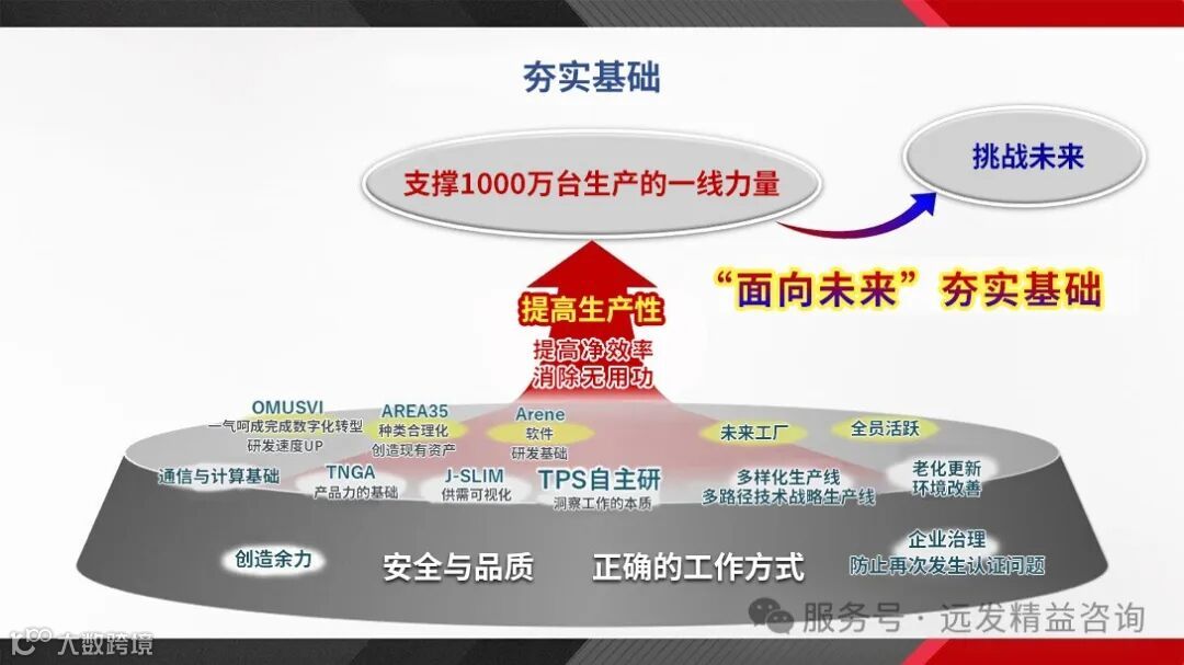为了进一步强化其基础,今年我们将继续整顿环境,使“支撑千万汽车制造的一线力量”与“面向未来迎接多样化挑战的执行能力”能发挥出来。也就是说,我们要继续推进“夯实基础”的各项举措。