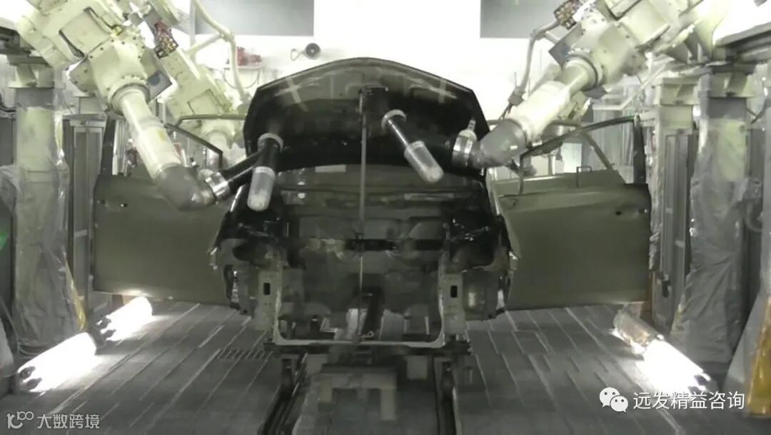 丰田也一直在积极致力于推行涂装自动化,其自动化的推广可以追溯到 50 年前。1994 年导入了一种手臂式涂装机器人,它可以匹配传送带运过来的车体,完成任何部件的喷涂,并保证涂装工艺水平的一致性。