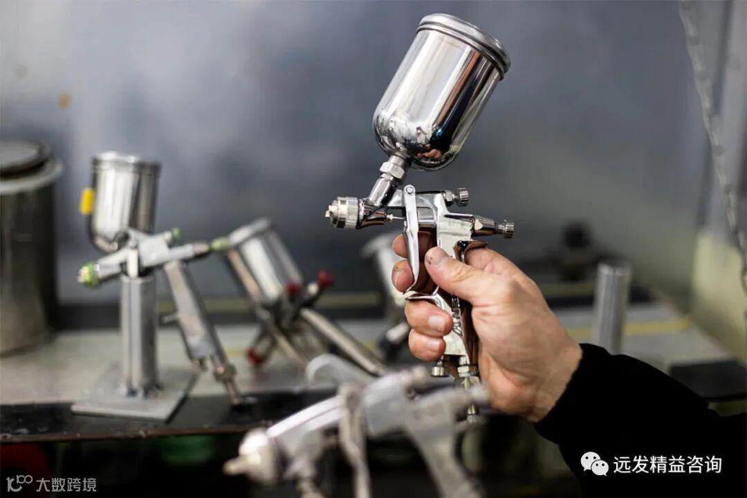 如果涂料颗粒太大或太细,将无法与原始涂料融合;如果喷射量太大,涂料会流挂;如果喷枪与喷涂物体的距离不合适,涂料将无法正常雾化。此外,喷涂速度也会极大影响光泽效果。这是一个只能凭借感官、直觉和经验而决定成败的过程。