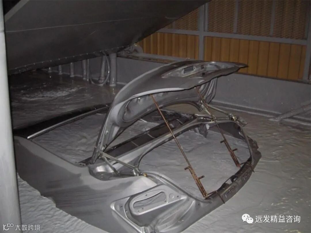 其中,最下面一层是“电泳层”,也称为“底漆层”。所谓电泳是对防锈涂料施加电压,使其附着在工件表面的一种涂层工艺。将带正电荷的车体浸入带负电荷的涂料池中,利用电场的力量,使涂料均匀、无缝覆盖在钢板材质的车体表面。