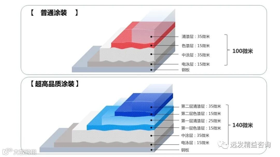 由4层构成的车漆,厚度仅为100微米左右,相当于人的一根头发。