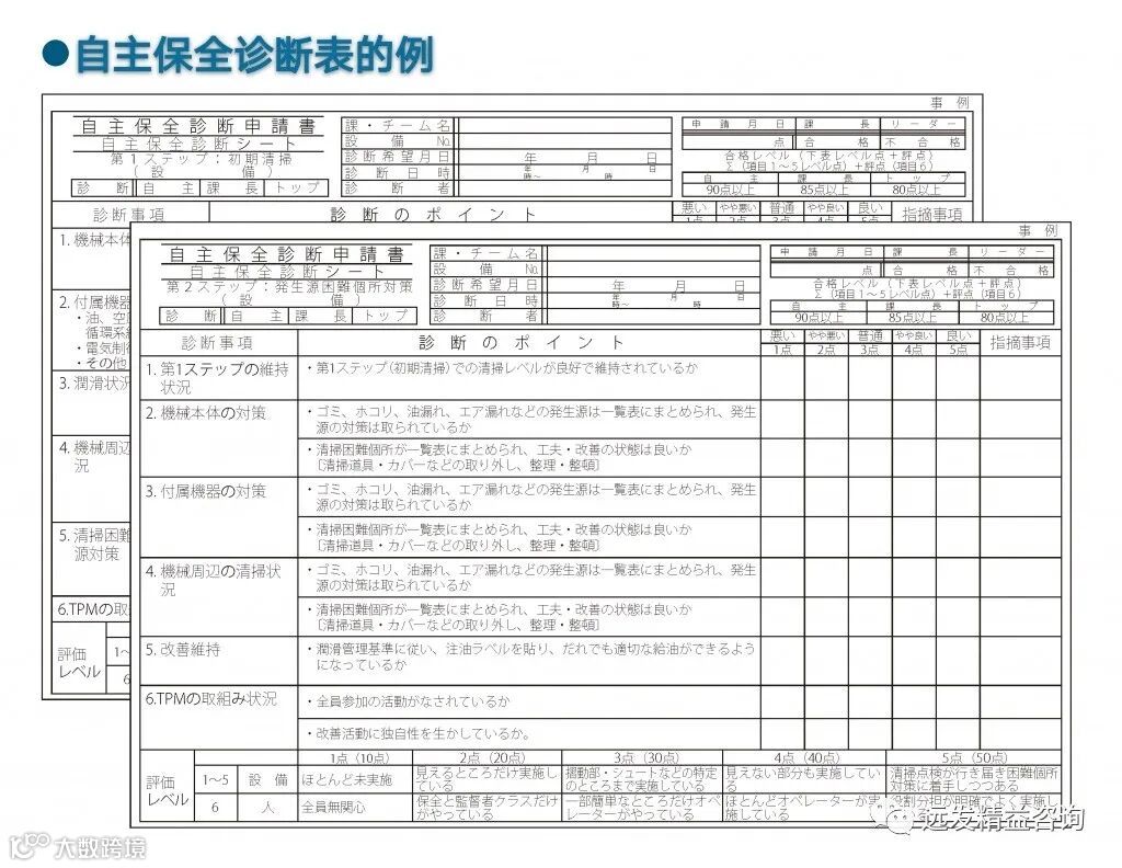 通过诊断,评估担当设备·区域的自主保全活动。如果取得不了期望的成果的话,就会判定为【不合格】。如果合格了就可以向下一个阶段推进。