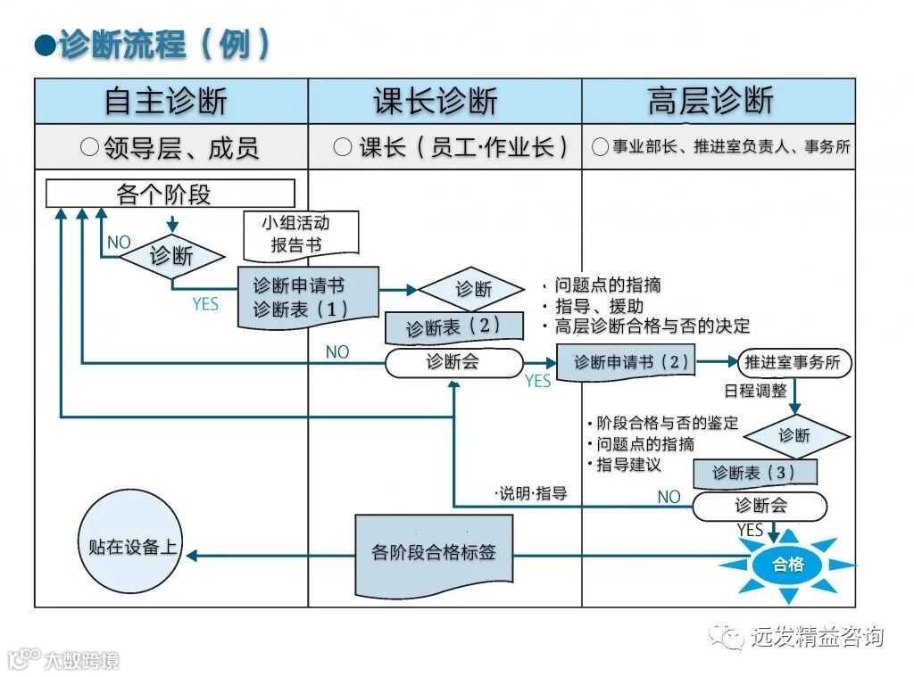 各阶段的诊断,使用各个阶段的诊断表。诊断表上写了各个阶段的目标和【应做事宜】,实施条件和其水准。