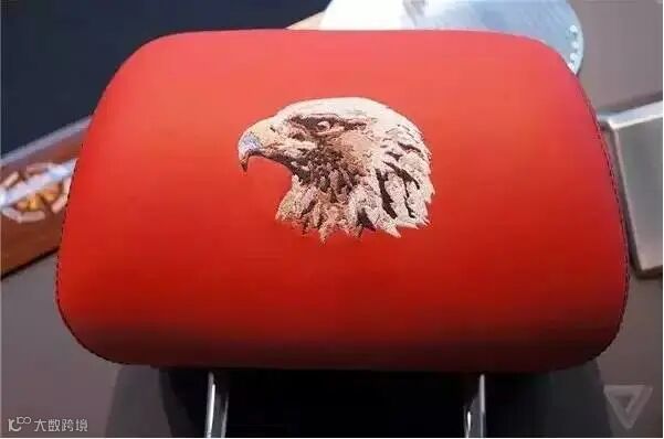 ▲ 因为是纯手工的装配厂,这里支持所有内饰外饰的个性化定制,有位客户很喜欢这个鹰图,因此他将它刺绣于他的车子头靠上