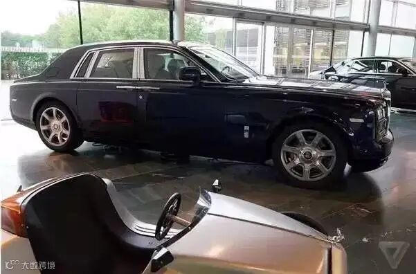▲ 在R-R001的旁边就是劳斯莱斯-幻影“Phantom”。在接待区后面停放的都是劳斯莱斯的近代车型,当中的焦点就是Phantom。
