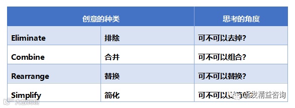 E・C・R・S是Eliminate(排除)、Combine(合并)、Rearrange(替换)、Simplify(简化)的首字母,分别表示以工序、作业、动作为对象的改善思路。