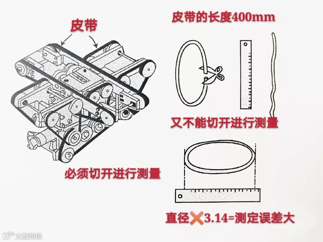 2.通过高度和圆周率测算皮带的圆周长,并进行标记。