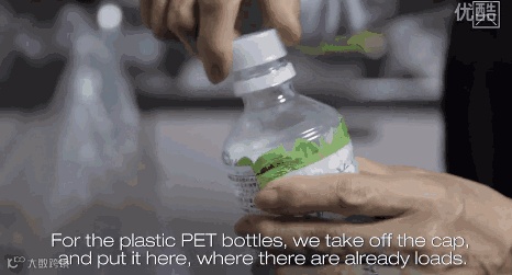矿泉水瓶盖、贴纸、瓶身分开归类
