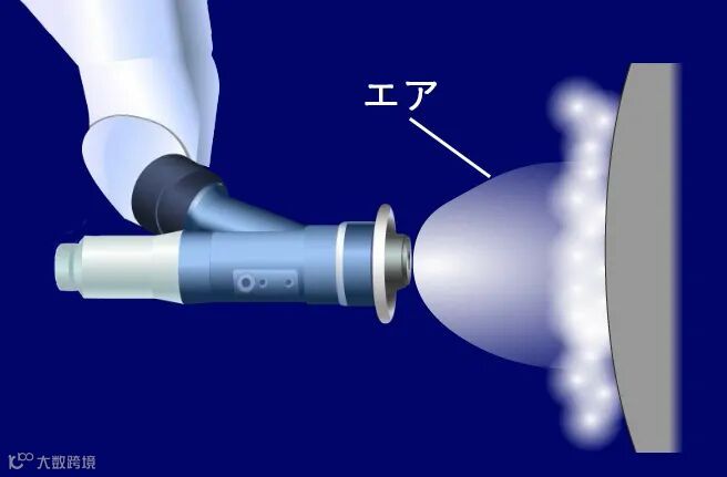传统的空气喷雾式喷涂机主要是通过空气动力将涂料微粒化,微粒化的粒子通过空气的流动附着在车体上。但是从车体反弹的空气会把涂料的粒子吹散,所以喷涂的附着率只有约60%至70%。相比之下,新型无气车漆喷涂机用电将涂料微粒化(静电微粒化),带上静电的粒子会被车身“吸附”附着在车上面。因为静电微粒化以及静电涂装技术,可以大幅减少粒子的飞散量,从而实现更高的附着率。