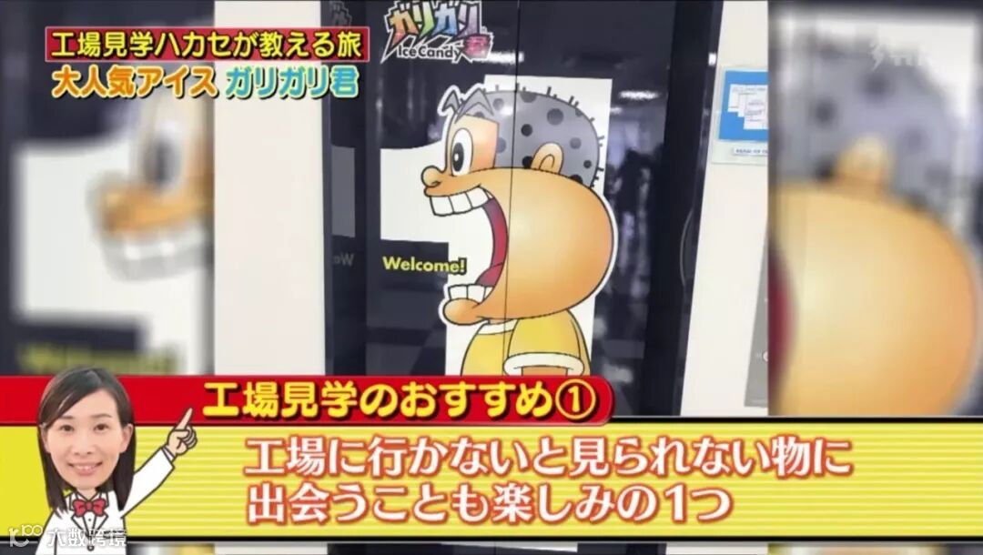 通过卡通形象"GARIGARI-KUN"的大嘴巴便可以进入工场内部,大嘴巴旁边的"工场见学"4个字其实使用冰棍的木柄拼写而成的。这点很用心!