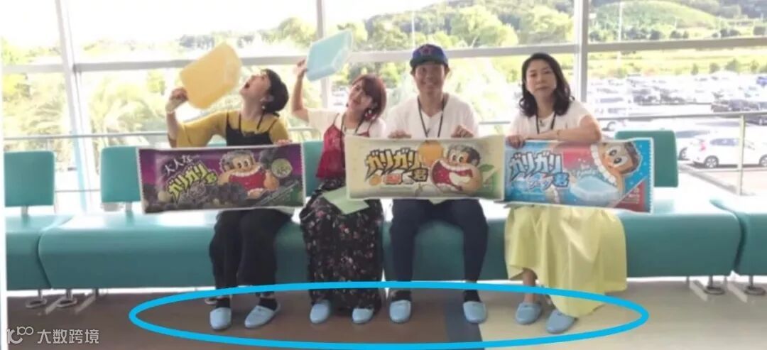 走入大厅便可以看到和冰棍色的沙发和冰棍形状的沙发靠背,不管大人还是小孩子看了都会很开心的用心设计。这个地方也是合影专用区,大家可以拿着冰棍模型和广告板拍照。大家看到他们穿的拖鞋了吗?也是他们的冰棍蓝耶!