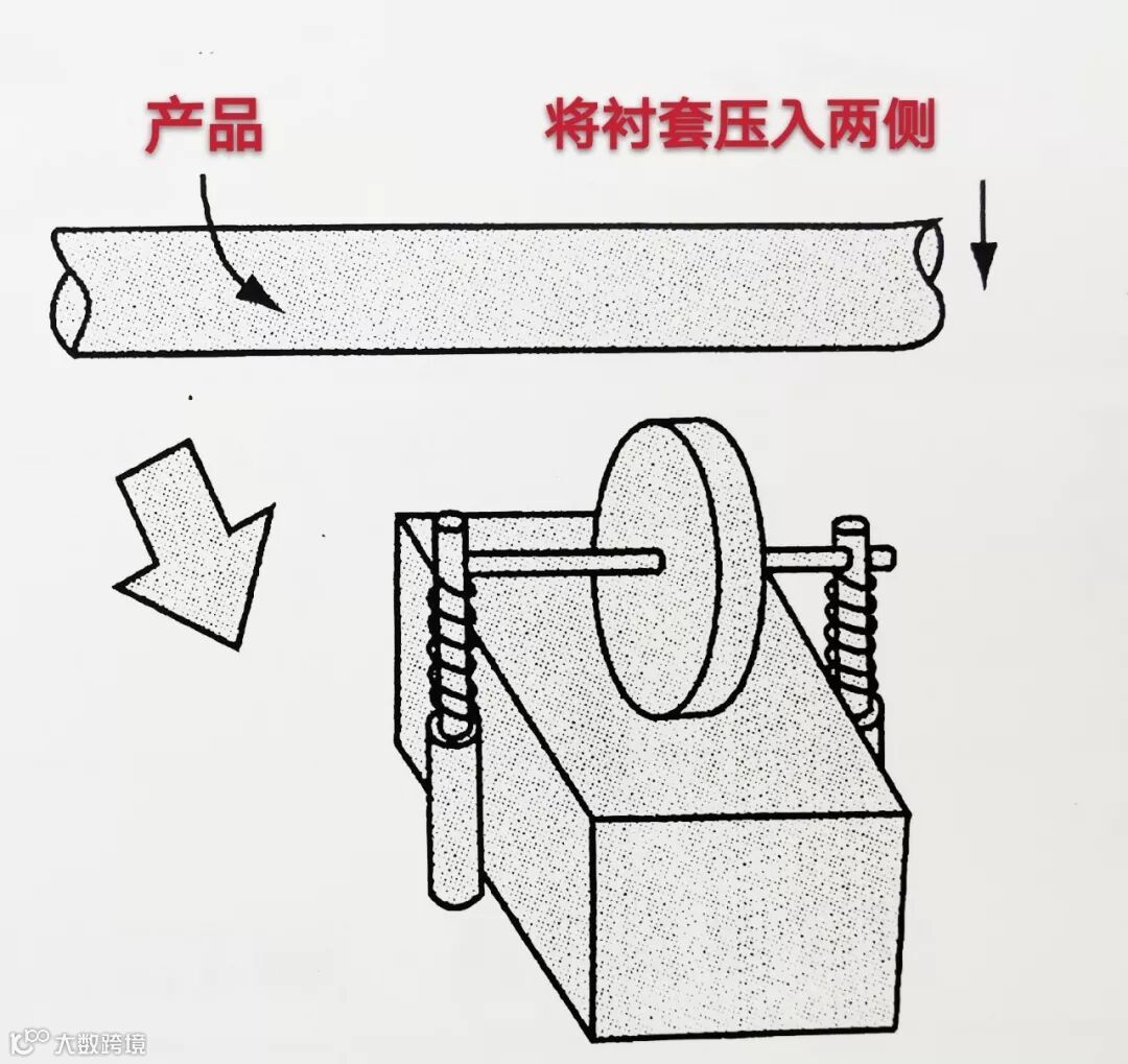 利用将产品压入衬套时滑道的滑动,涂布用水轮车转动,自动涂识别标识。