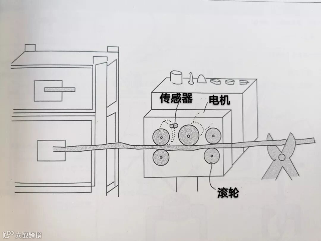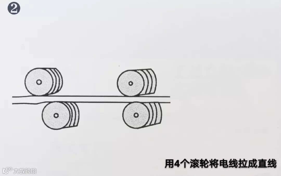 通过电机驱动的滚轮和另外四个滚轮拉直电线,按照设定的长度,抽口所需要的长度后停止动作。