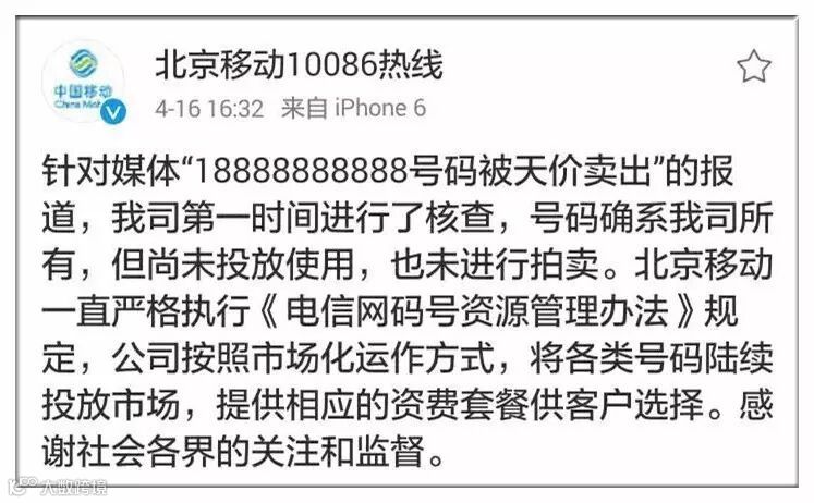 据人民网报道,中国移动回应称:18888888888号码目前尚未投放使用,也从未进行过任何拍卖。