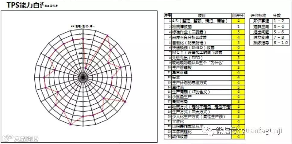 对于TPS的学习,我个人的能力从TPS能力自评表来看,套用夏俊超同学的话就是不要脸。明明没有达以这个能力自评却是很高。让我清晰的认识到自己的短处和能力不足。在接下来的学习过程上去不断努力学习来把短板补上。