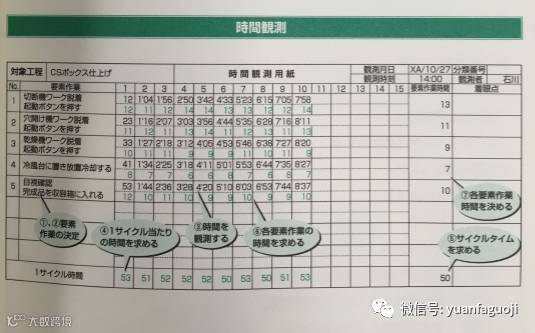 去测试“人的动作”的时间,测试时,观察者一定要紧跟作业人员,测试各要素的作业时间。