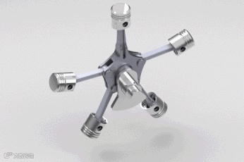 仔细观察,其实是四个活塞,6个活塞连杆,中间2活塞2连杆,外面2活塞4个连杆。