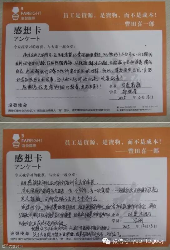 远发国际咨询集团·重庆道场-----训导之初级人财育成课第005期于2015年12月12日-----12月14日正式开启。在高级管理咨询顾问陆志老师的带领下,整个培训过程,学习氛围浓烈。拥有丰富现场精益生产推进经验的陆志老师,以多个行业的相关案例,生动易懂的让学员了解丰田的两大支柱,5S管理方法以及七大浪费等知识,并在道场实战中,让学员用身体去理解丰田精益生产方式的精髓。理论与实战的结合,解决了学员们在作业现场的一些困惑。学员反响强烈。