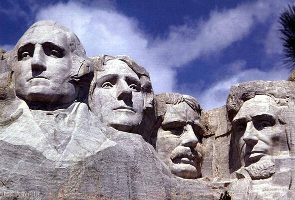 拉什莫尔山,或译为若虚莫山,俗称美国总统公园、美国总统山、总统雕像山,雕刻着美国历史上著名的前总统头像,他们分别是华盛顿、杰斐逊、老罗斯福和林肯。