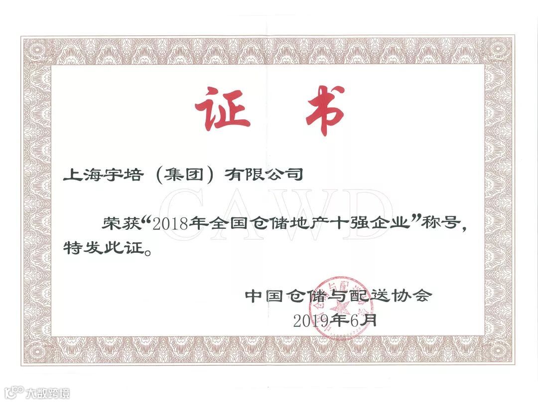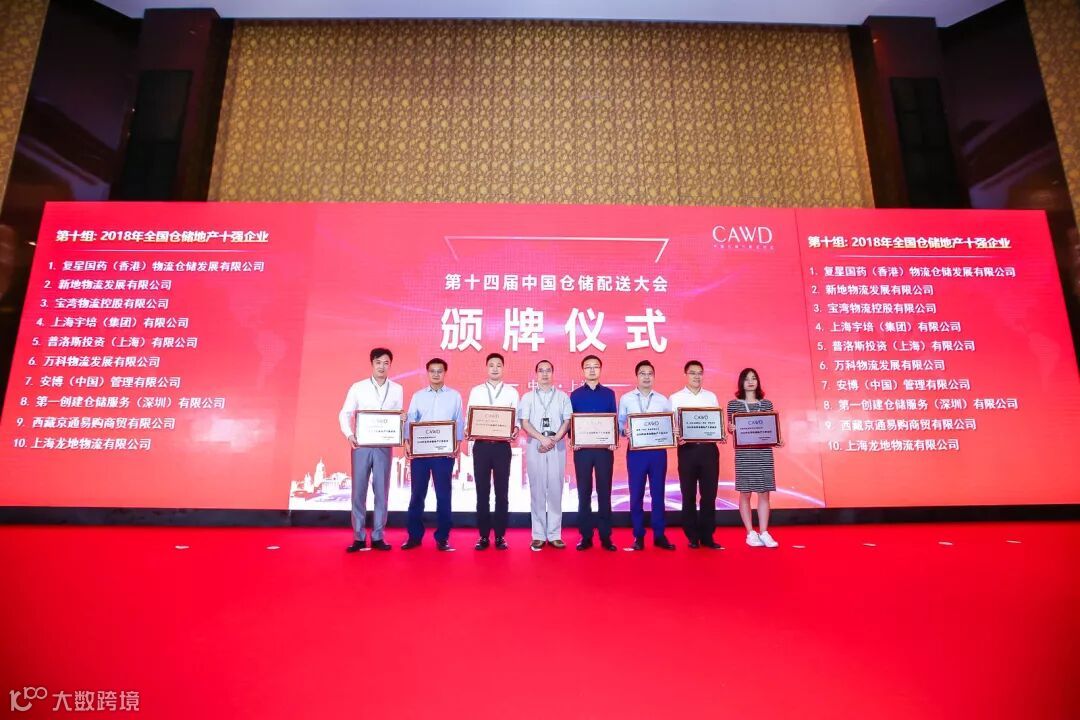 大会上,上海宇培(集团)有限公司被中国仓储与配送协会评为“2018年全国仓储地产十强企业”。
