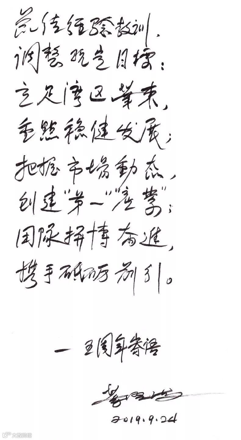 感恩陪伴、参与、见证、关心集团成长的家人、同事和所有朋友!过去5年的成绩只是为实现目标前进了一步,我们要继续拼搏,务实、协同、诚信、创新、共赢,逢山开路,遇水架桥,为第一创造下一个精彩!