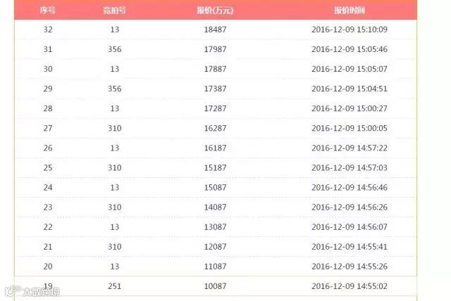 竞拍最后一天,12月9日14:55,竞拍价突破1亿,仍在竞争的企业只剩3家。