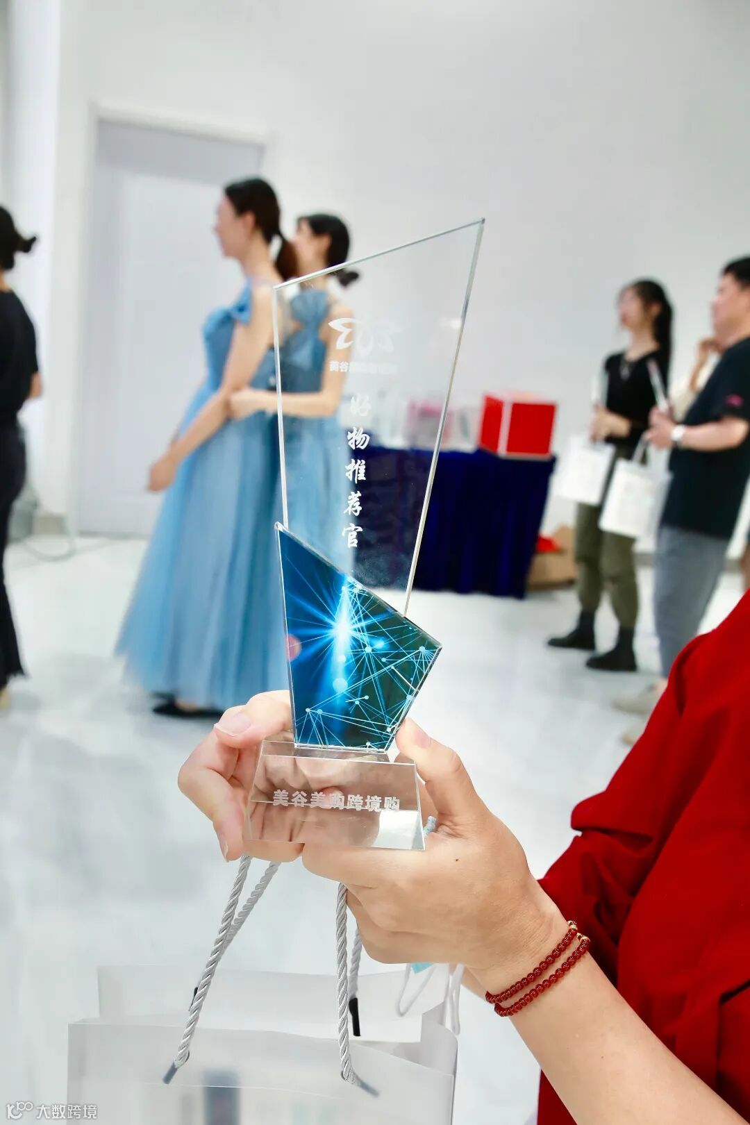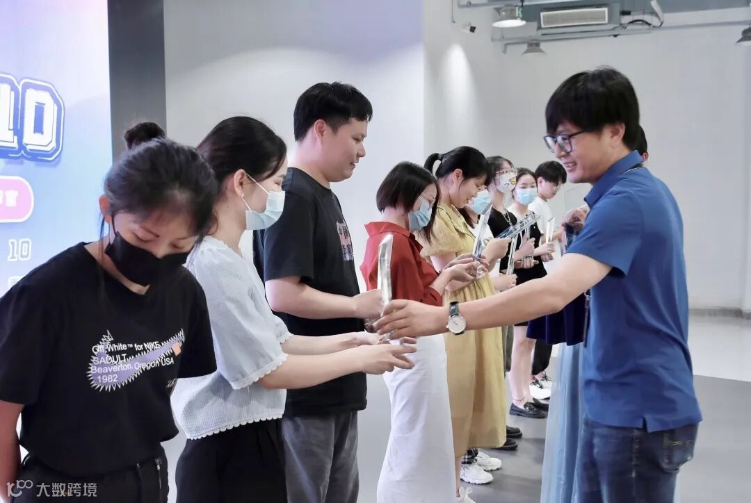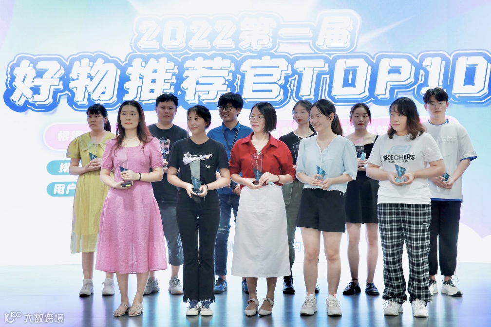 周东雷为亲临现场的10位好物推荐官颁发荣誉奖杯和跨境礼品。