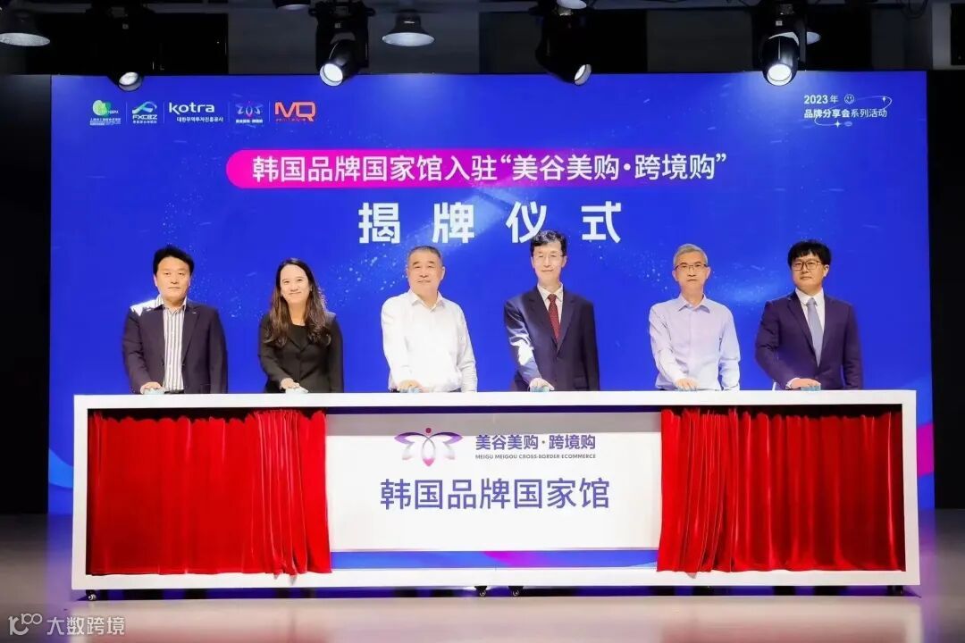 金根模、李永杰、朴洙贤、顾卫星、丁永洙、周东雷共同为“美谷美购·跨境购”韩国品牌国家馆揭牌。