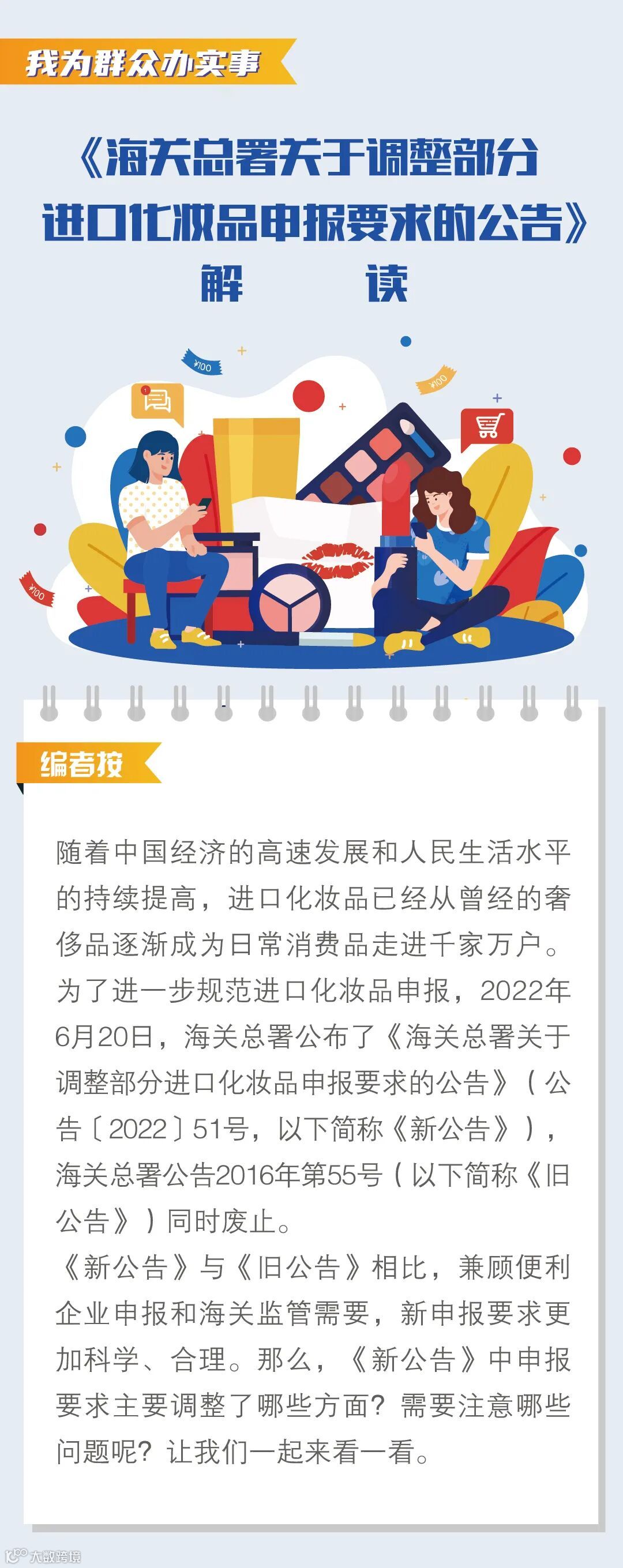 【关税聚焦】我为群众办实事——《海关总署关于调整部分进口化妆品申报要求的公告》解读