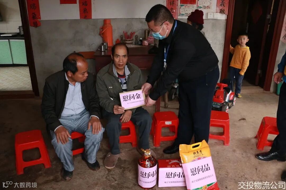 为深入学习宣传贯彻党的二十大精神,扎实推进“我为群众办实事”实践活动,全力做好巩固拓展脱贫攻坚成果同乡村振兴有效衔接工作,充分发挥后盾单位帮扶作用,让脱贫户和监测对象困难家庭感受到后盾单位的关心关怀,1月13日上午,南宁交投物流公司党员、团员、青年志愿者深入定点帮扶村——宾阳县甘棠镇那河村开展春节前走访慰问暨“大走访送温暖防返贫”活动。青年志愿者为那河村脱贫户、监测户送上节日祝福和大米、花生油、面条、对联等新春慰问品,详细了解他们的家庭生活情况、健康状况、家庭收入情况和政策享受情况,认真倾听他们的心声期盼,引导感党恩听党话跟党走。
