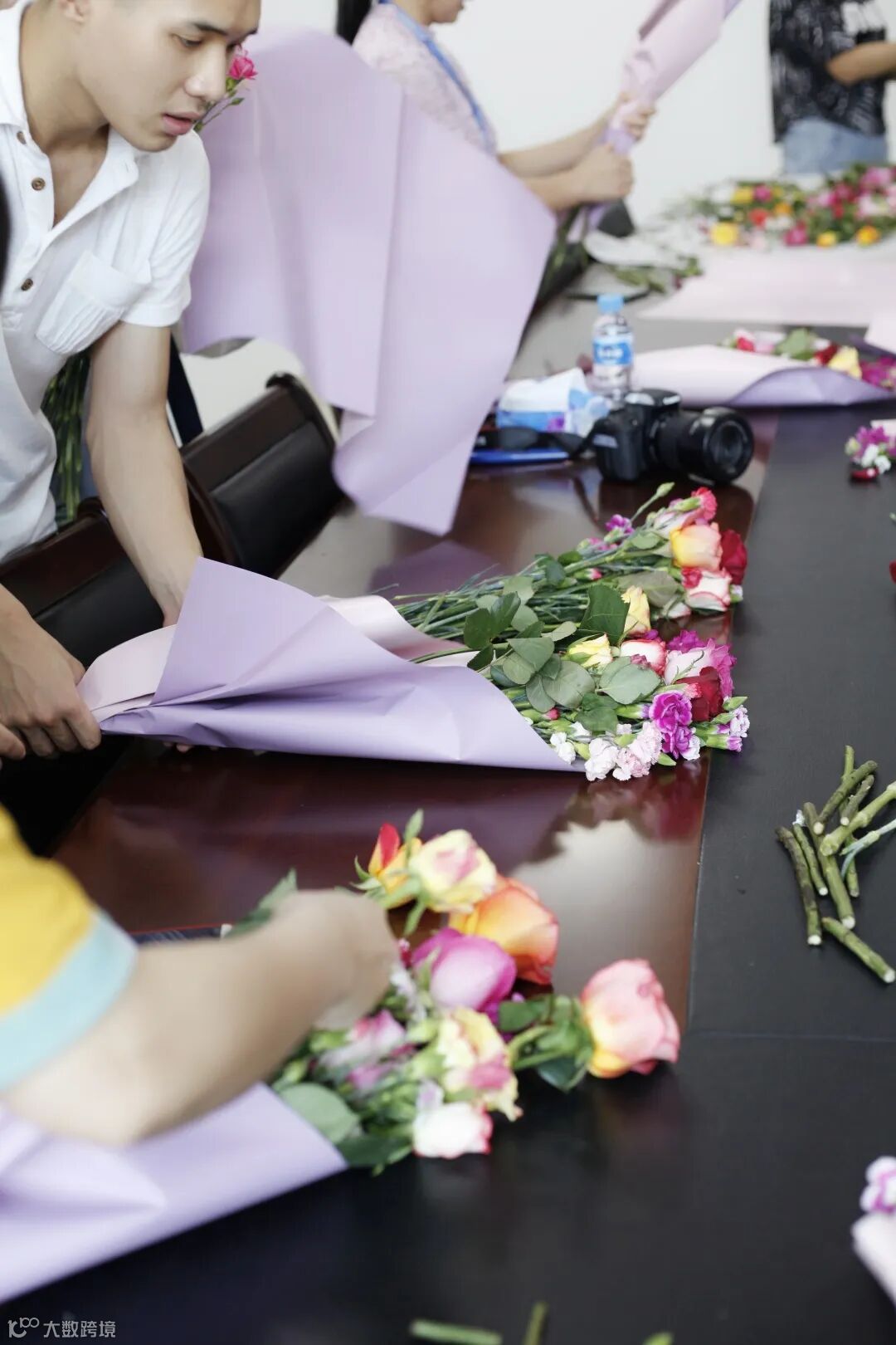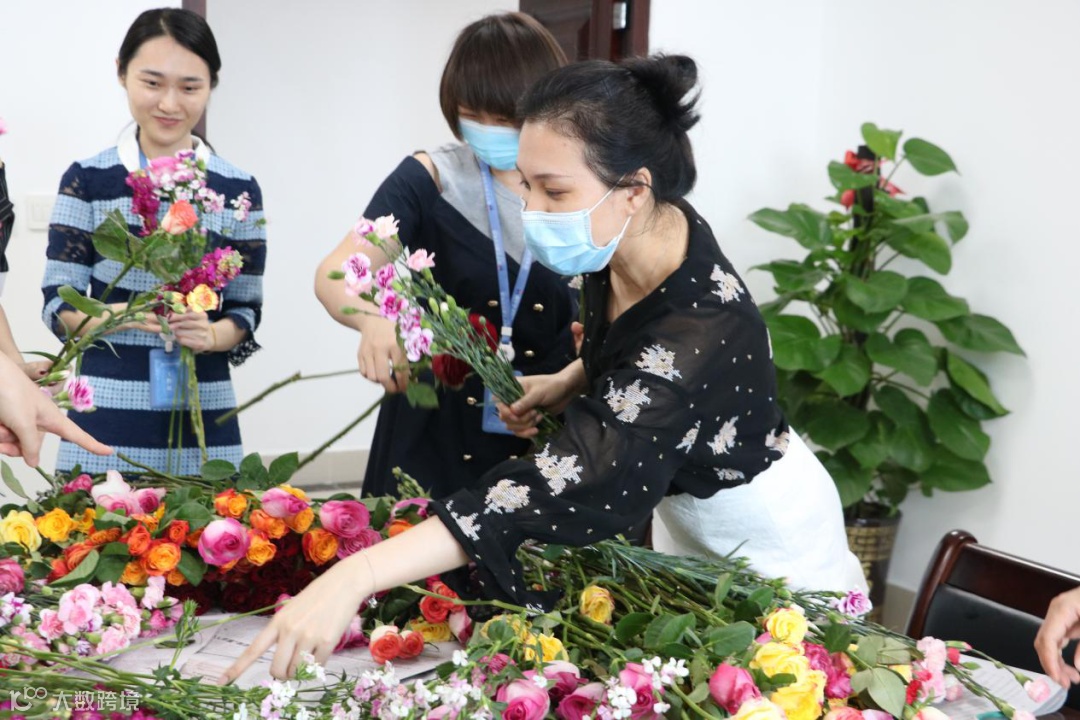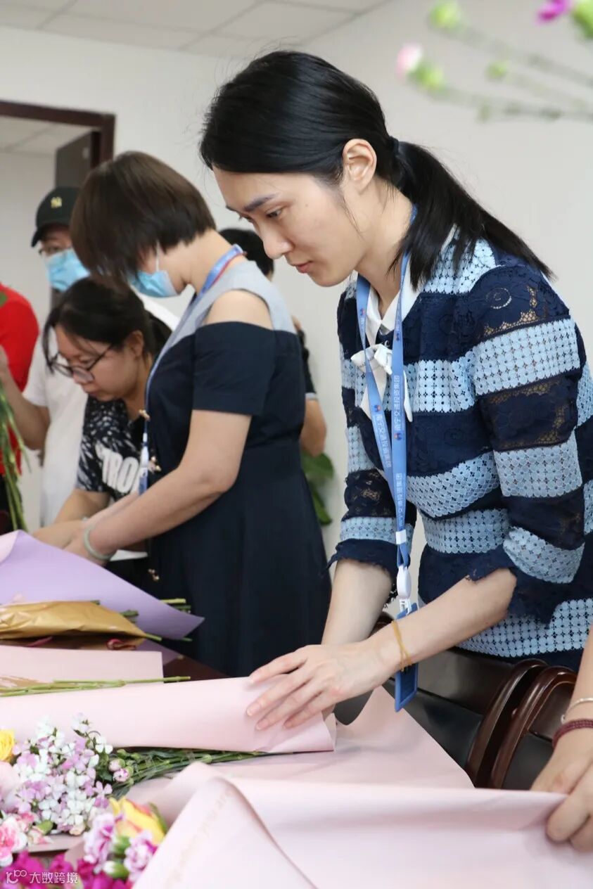 交投置业公司党支部党员代表亲自采购了500多支康乃馨,玫瑰花,紫罗兰,石竹等花朵