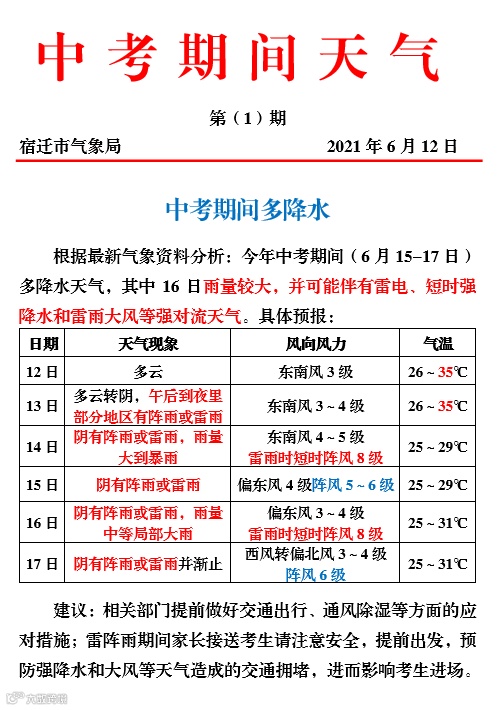 导读:市气象局刚刚发布重要天气预告雷电+大风+暴雨就要来了 根据最新气象资料分析:今年中考期间(6月15-17日)