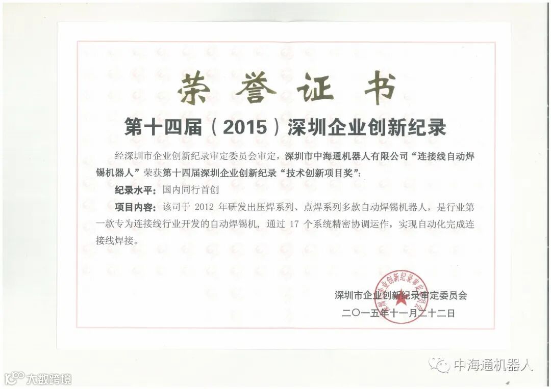 深圳市中海通机器人有限公司是一家致力于线缆连接线智能制造机器人研发、生产、销售的国家级高新技术企业。目前已申请36项专利技术,向市场推出覆盖连接线前处理、焊接、铆压、检测、包装等单、多工位智能机器人及全自动智能生产线,现已成为行业首选供应商