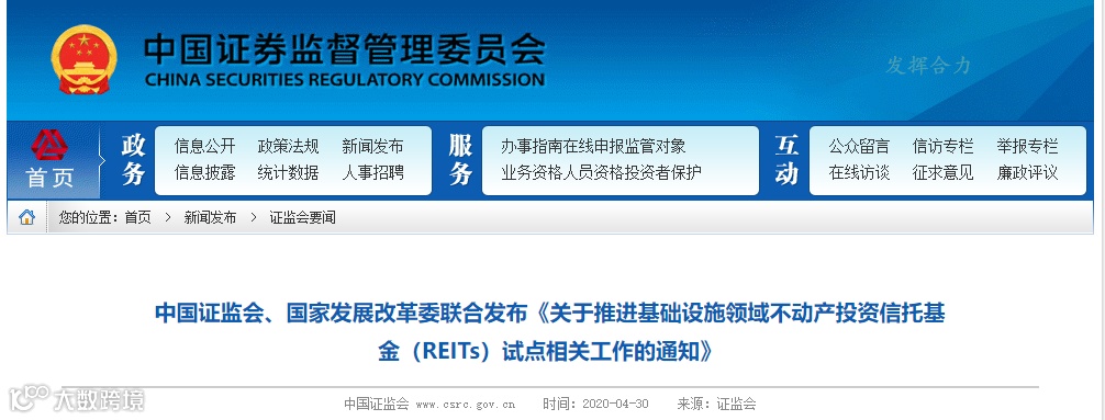 事实上,早在2020年4月30日,中国证监会、国家发改委联合发布了《关于推进基础设施领域不动产投资信托基金(REITs)试点相关工作的通知》(下称《通知》),并出台配套指引。根据《通知》,基础设施REITs此次聚焦于新基建、交通、能源、仓储物流、环境保护、信息网络、园区开发七大领域。