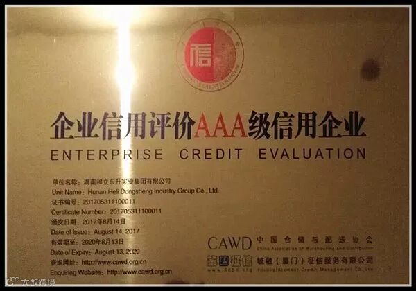会议期间,中国仓储与配送协会为湖南和立东升实业集团有限公司在内的十家全国第二批仓储配送行业A级信用评级示范企业举行公开授牌仪式,湖南和立东升实业集团有限公司获得AAA级信用企业称号,湖南高星物流园开发有限公司获得“五星级仓库”荣誉称号。此次授牌是对和立东升集团创造的优秀成果与高端品质的认可,也是对和立东升集团打造商务信用典型案例、树立行业标杆的巨大支持与鼓励!