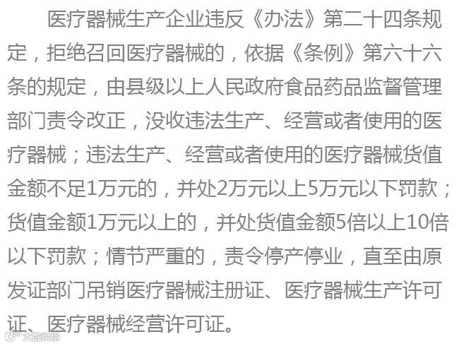 医疗器械生产企业拒绝召回医疗器械的如何处罚?