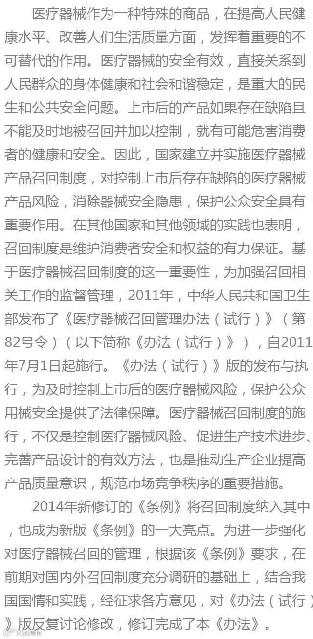 为强化医疗器械召回的监督管理,切实推动企业召回主体责任的落实,根据《医疗器械监督管理条例》(以下简称《条例》),国家食品药品监管总局制定颁布了《医疗器械召回管理办法》(以下简称《办法》)。该《办法》将于2017年5月1日施行,现将有关内容解读如下: