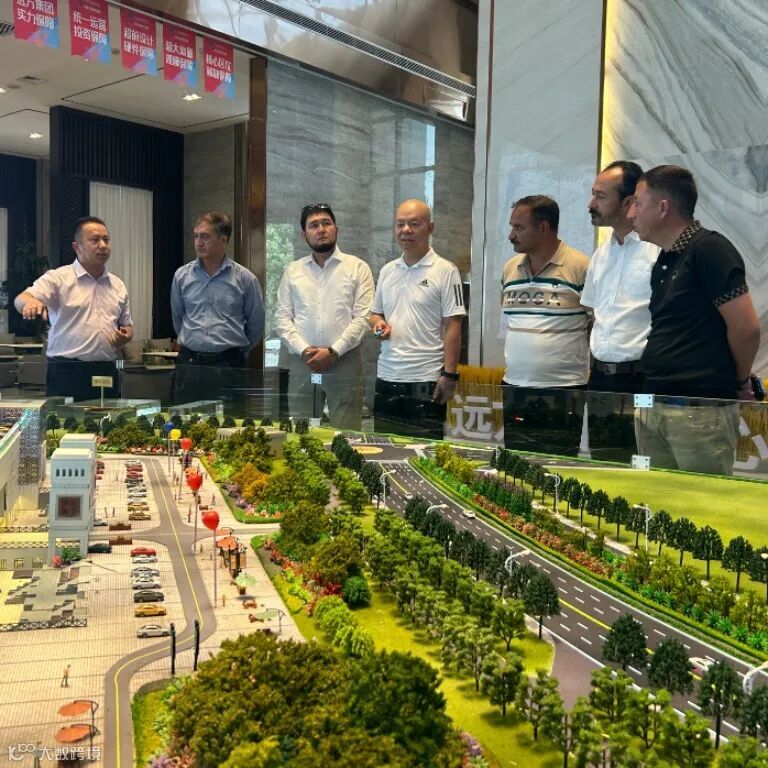 各公司代表来到远方国际物贸港沙盘前听取了,董事长助理董校冈详对远方物贸港的建设规划、业态分布、经营状况的介绍,并实地参观物贸港园区。