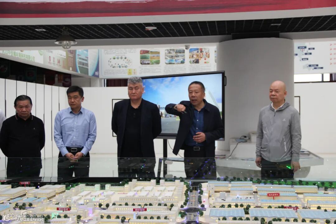 考察团一行,在沙盘前,李冀川详细介绍了远方物贸港的建设和运营情况,并着重介绍了新疆物流贸易集散中心项目、喀什经济开发区物流贸易发展规划等情况。