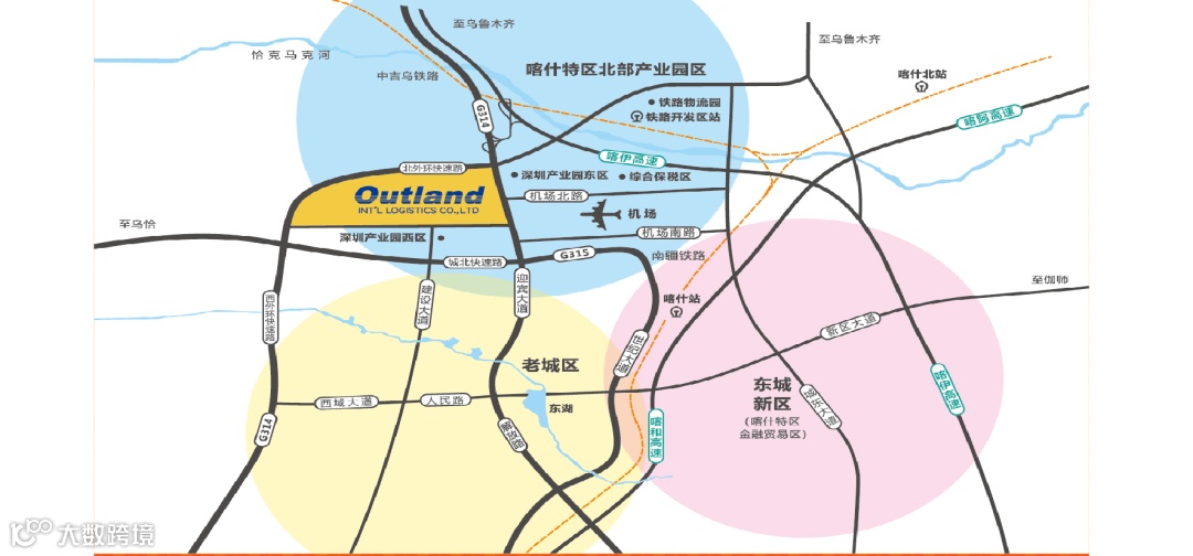 距喀什飞机场3公里,喀什火车站7公里,喀什市中心12公里。园区5公里范围内,覆盖深圳产业园、综合保税区、齐鲁如意纺织产业园、铁路物流园、国际航空港等产业、通过迎宾大道、北外环高速与主城相连;有喀和铁路作为南疆铁路延长线,与和田、阿克苏、库尔勒、吐鲁番、乌鲁木齐等城市联通。北部为规划中的喀伊高速公路、中吉乌铁路;东部紧邻314国道,是喀什通向哈萨克斯坦、俄罗斯、波兰、德国以及荷兰鹿特丹港的重要通道。15公里范围覆盖喀什城区商业中心和各大专业市场,300公里范围内覆盖五大国际口岸和喀什地区十二县市及克州、和田广大地区,1000公里内对接八国国际贸易,区位优势是非常明显。南来北往,交通便利,项目位置优势尤为突出。