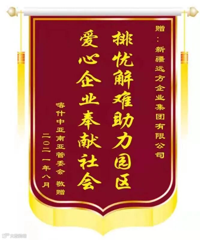 2021年8月5日,远方企业集团物业事业部物流中心物业收到中亚南亚工业园区管委会一面锦旗,感谢远方物业团队对工业园区工作上的大力支持!